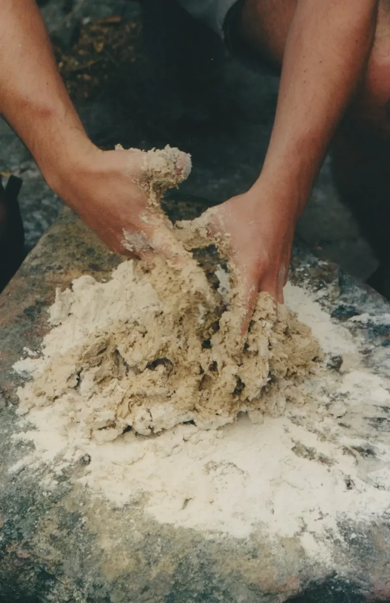 Wolfang kümmert sich um den Teig und nach kurzer Gehzeit kommen die wohlgeformten Teiglinge in die Glut.