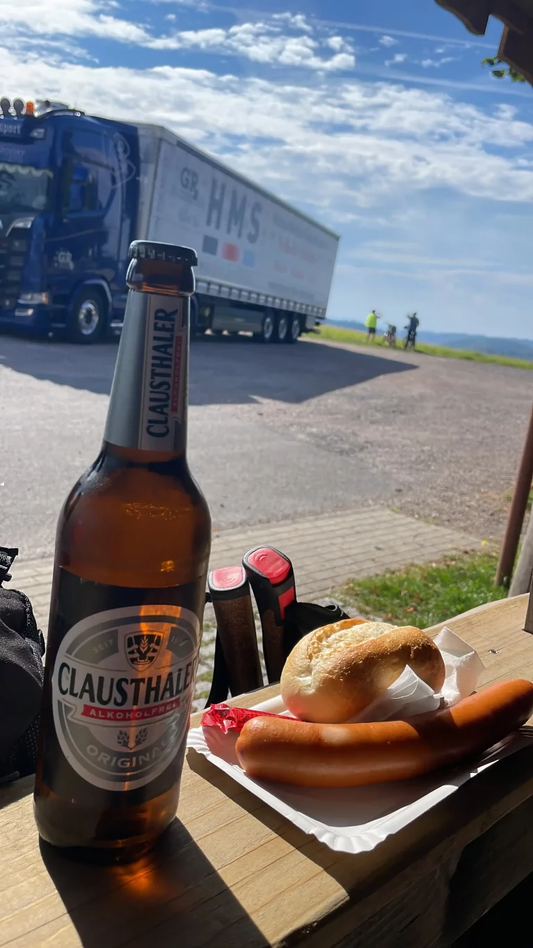 Danach feiere ich das Ende der Tour im Wanderstützpunkt mit einer Bratwurst und einem Weizenbier – eines der besten Biere die ich je getrunken habe.