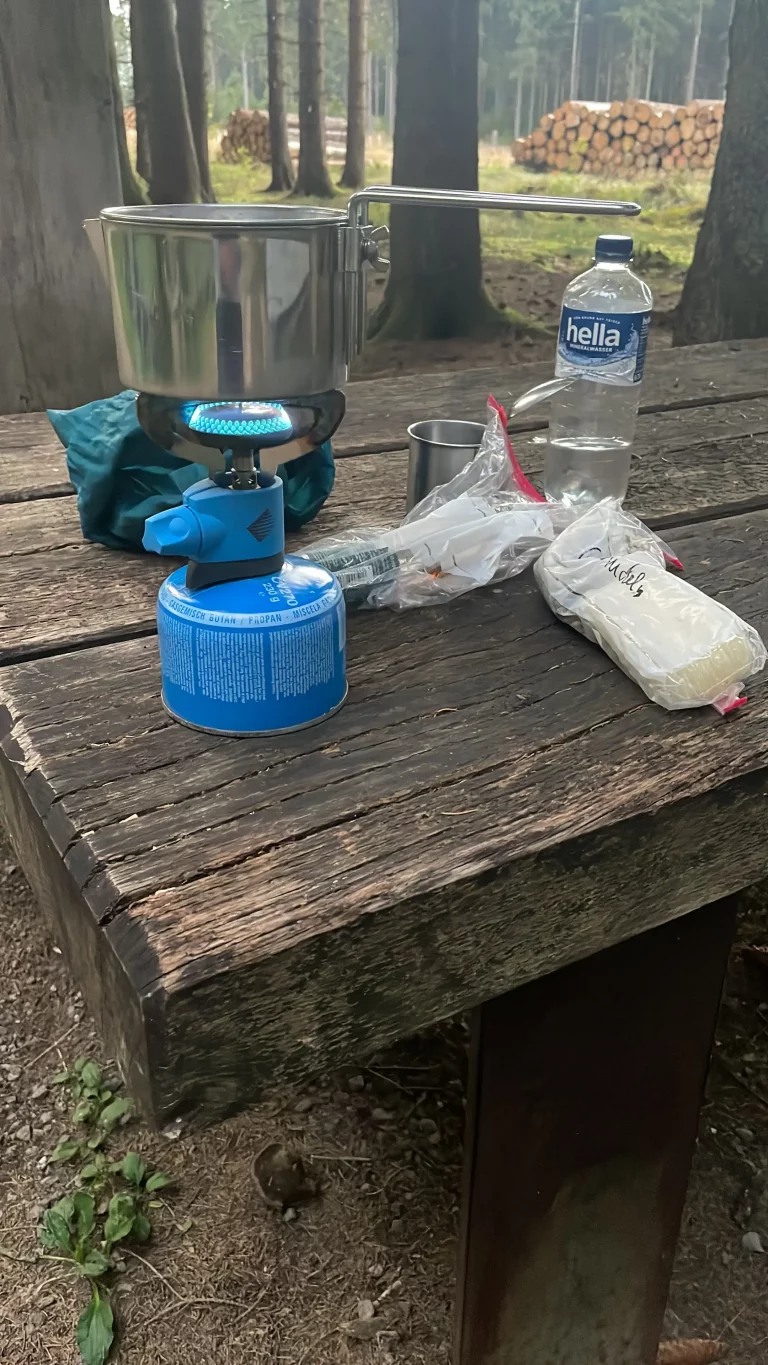 Auf dieser Tour habe ich Wasserflaschen für 4 Liter dabei, die ich auch benötige, da es Abschnitte gibt, in denen es keine Quellen oder andere Quellen gibt und man sich das Wasser etwas einteilen muss.