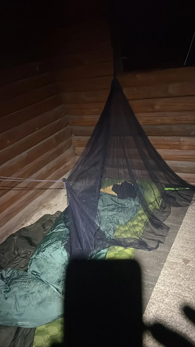 Die Hütte teile ich mir mit einer Maus, die Ihr Nest im Eck hinter unter der Bank hat und nachts sehr geschäftig in der Hütte umher rennt. Meine Ausrüstung und Vorräte lässt Sie aber in Ruhe, dass kann ich beobachten.